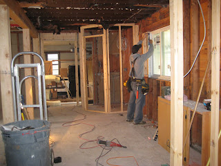 Ok, the additions are finally "part" of the house, meaning, you can walk into them, and actually get a feel for what the layout will actually be like. As a result, Tony and our contractor (of course) decided to change some of the layout, and decided to remove a hallway leading to the master suite and change it from a hallway "laundry closet" into a laundry room, which will then be attched to the master closet. The master bedroom suite door will be off the living room. This is great, because we will actually have a laundry room now.